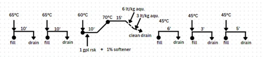 Chemical selection: 1. Persoclean STN [pH-neutral non-ionic surfactant], 2. Persopon RSK [Acidic anionic soaping agent]