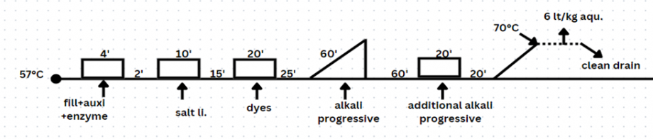 On the day of project execution (16 May 2024) a bulk batch (TKL-BC-24-07510) was selected as the experimental dyeing (Real Black) procedure of 100% Cotton Knitted fabric having the weight of 222.9KG. The batch of knitted fabric was S/J fabric and composed of US cotton. The dyeing machine used was the Sclavos Athena 3A (Capacity: 250KG).