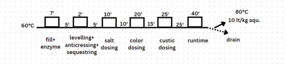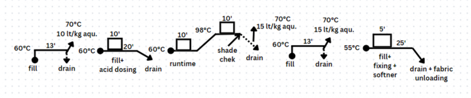 On the day 17 May 2024 a bulk batch (TKL-BC-24-03910) was selected baseline data collection, executed dyeing (Real Black) procedure of 100% Cotton Knitted fabric having the weight of 803.4KG. The batch of knitted fabric was S/J fabric and composed of US cotton. The dyeing machine used was the Sclavos Athena 3A (Capacity: 900KG).