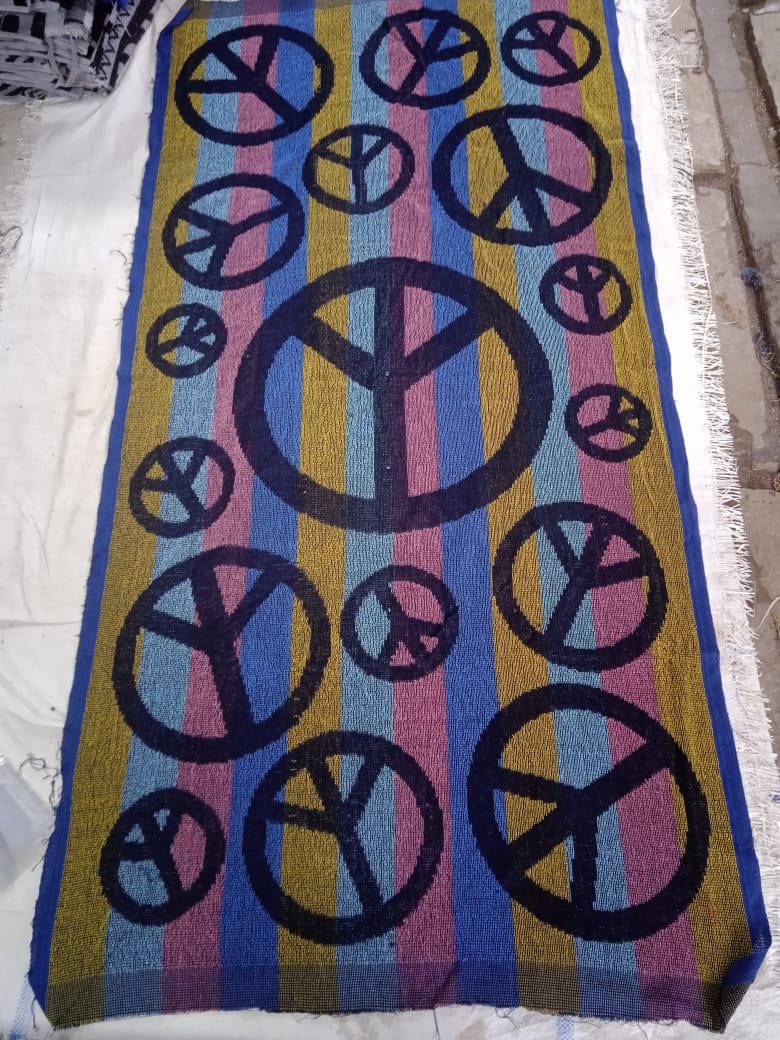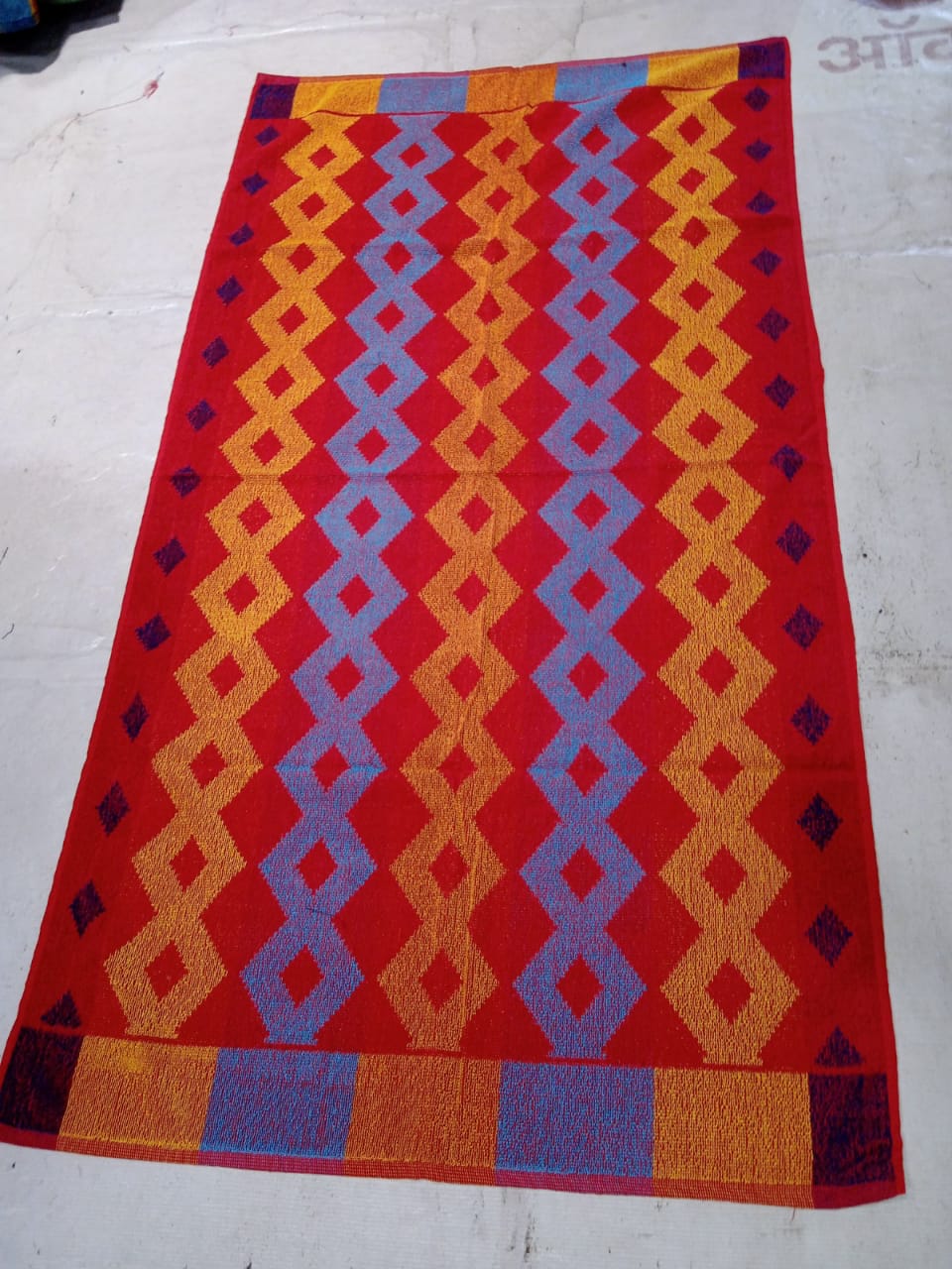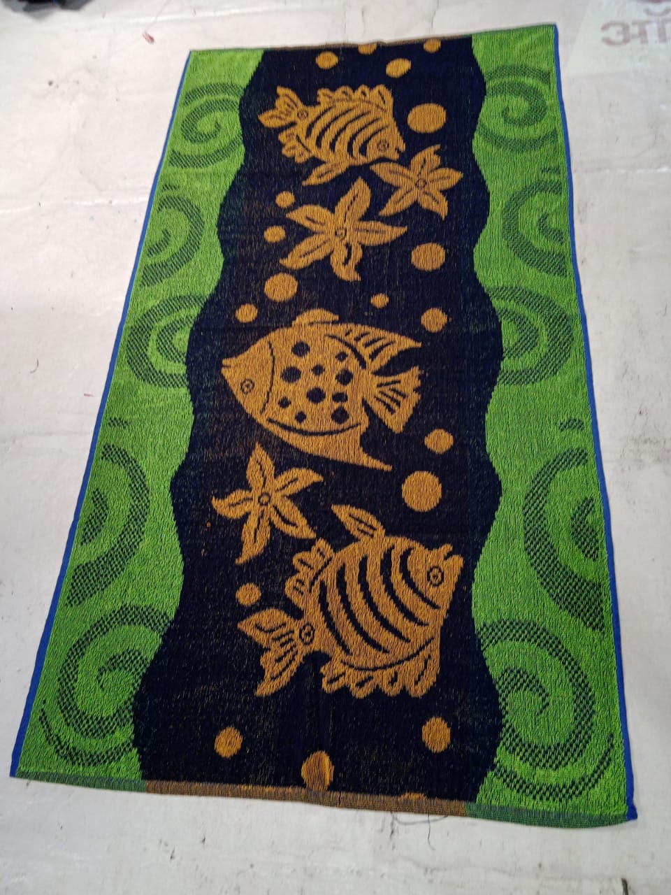 High-quality Powerloom PC Yarn Jacquard Beach Towels, made using a durable polyester-cotton blend for superior strength and softness. The towels feature attractive jacquard designs in assorted patterns, ideal for bulk supply and export.