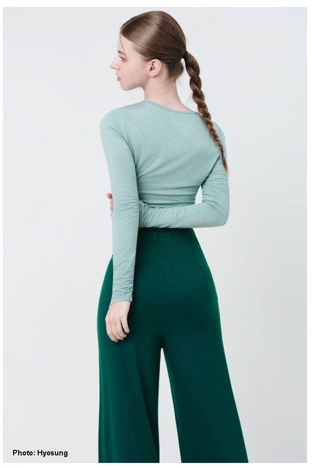 The new collection will make its debut at Performance Days Munich, the specialized fabric trade show taking place in Munich on October 29-30. For the occasion, both Hyosung TNC and Lenzing will showcase a yoga inspired concept garment range designed by Hyosung TNCs Fashion Design Center, made with various blends of Lenzing’s Tencel and Lenzing Ecovero made with Refibra technology and Hyosung TNC’s certified Regen Bio Elastane partly made with renewable resources, 100% recycled Regen Elastane, and Creora Color+ Elastane.
