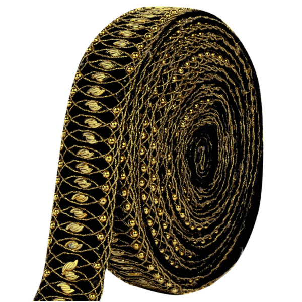 Fancy Designer Embroidery Lehenga Border Laces. Salmo Codding, Golden Bead Work on Velvet.