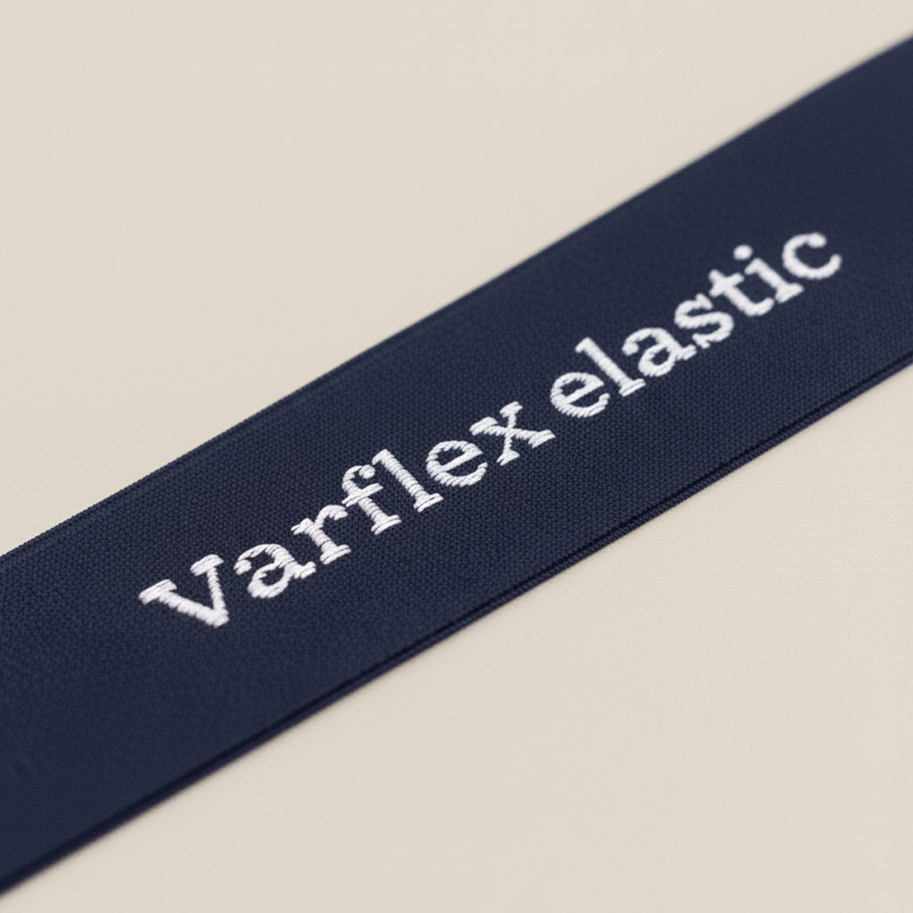 It combines aesthetic appeal with durability and elasticity, making it a popular choice for branded garments and high-end fashion accessories.