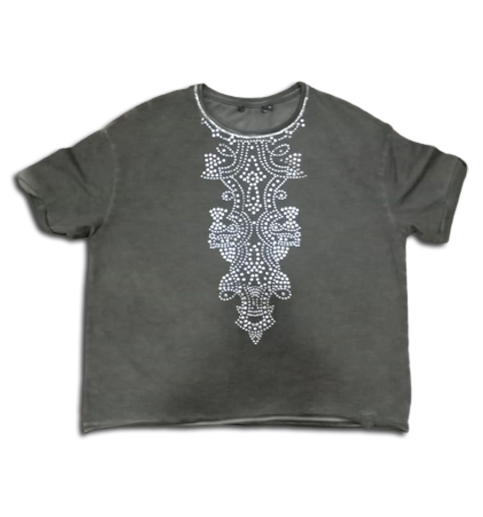 This T-shirt is acidwashed and value added with Studs on the Chest.