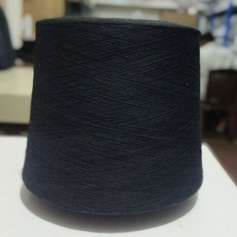 Black coloured recycled yarn with 1200+ CSP, actual count - 18+.