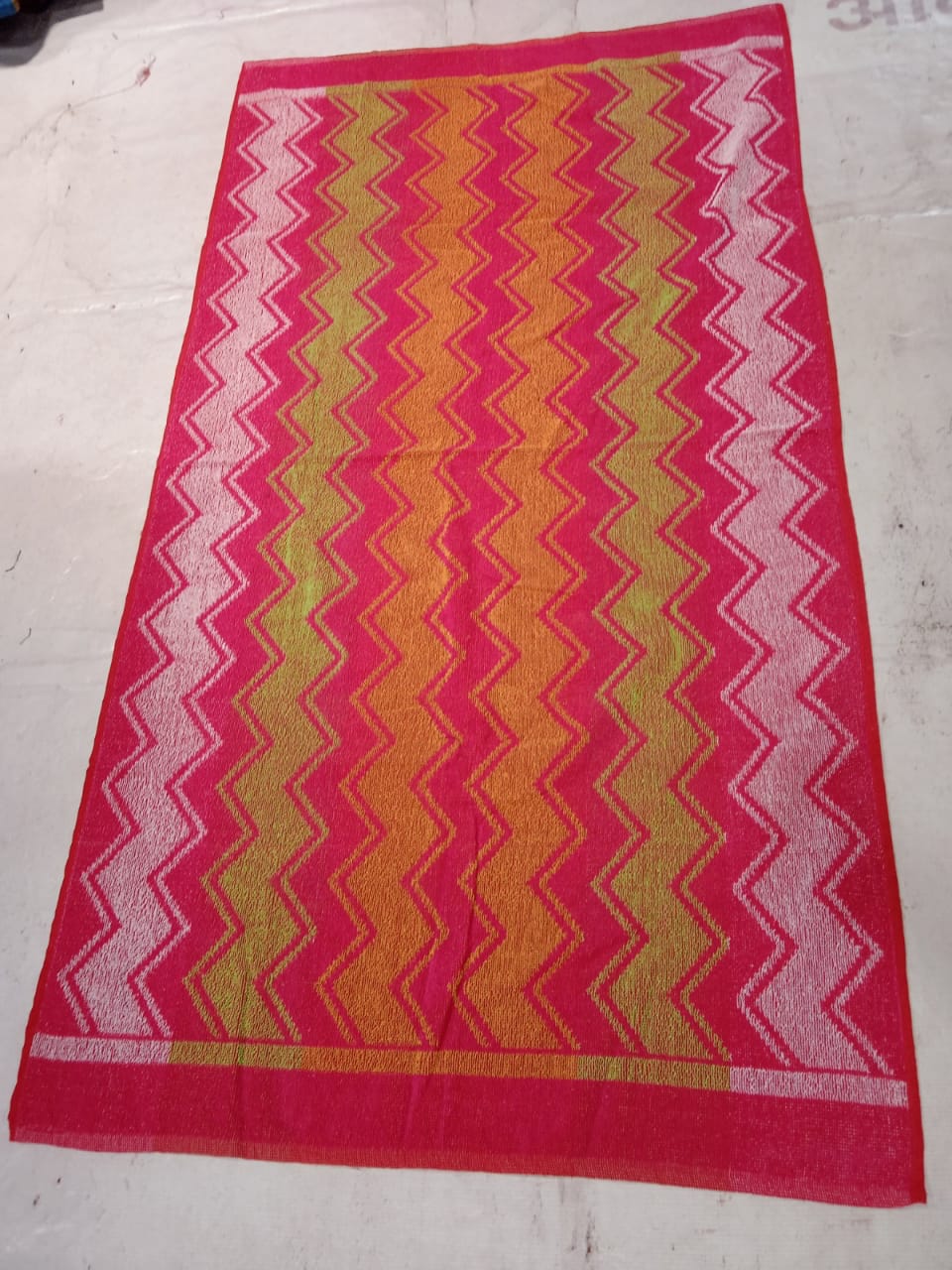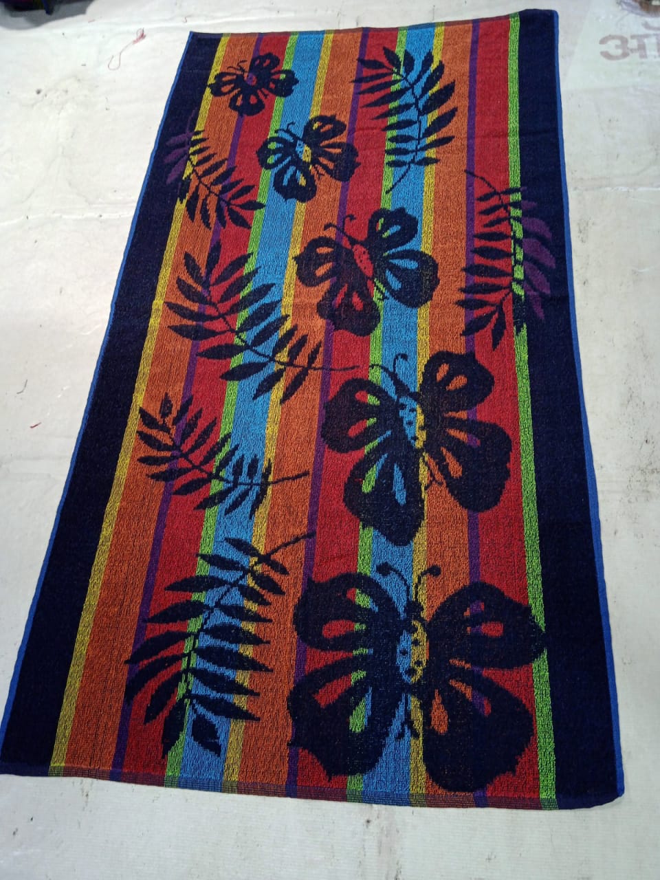 High-quality Powerloom PC Yarn Jacquard Beach Towels, made using a durable polyester-cotton blend for superior strength and softness. The towels feature attractive jacquard designs in assorted patterns, ideal for bulk supply and export.